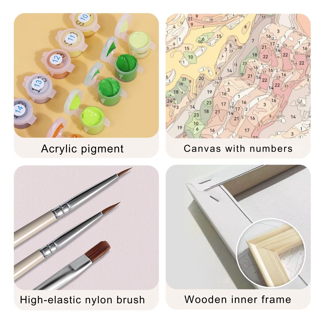 Mini paintings by numbers let you create real art by filling numbered areas with acrylic paint on fine linen canvas. Our mini kits are a calming way to unwind and make beautiful little masterpieces.